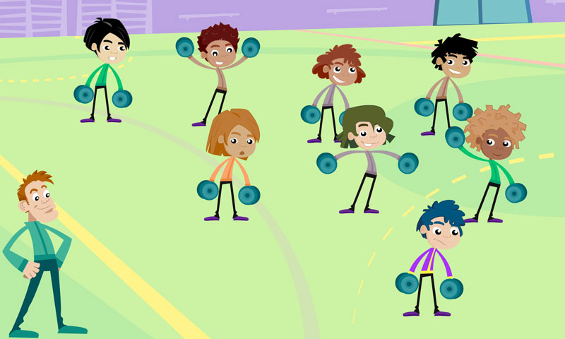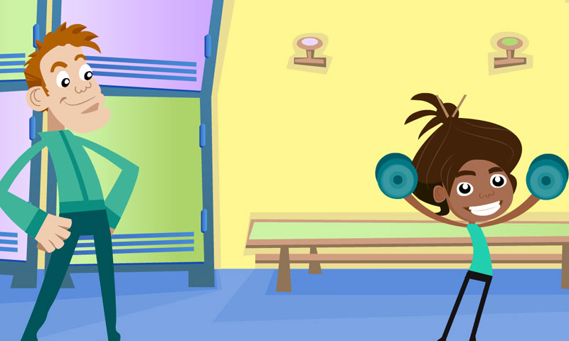 Auf in die Turnhalle und ran an die Hanteln! Richtung und Bewegung: 12 Wörter.