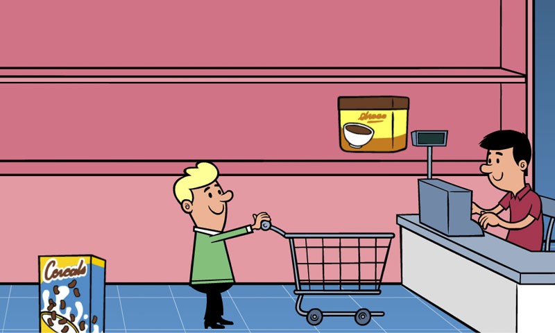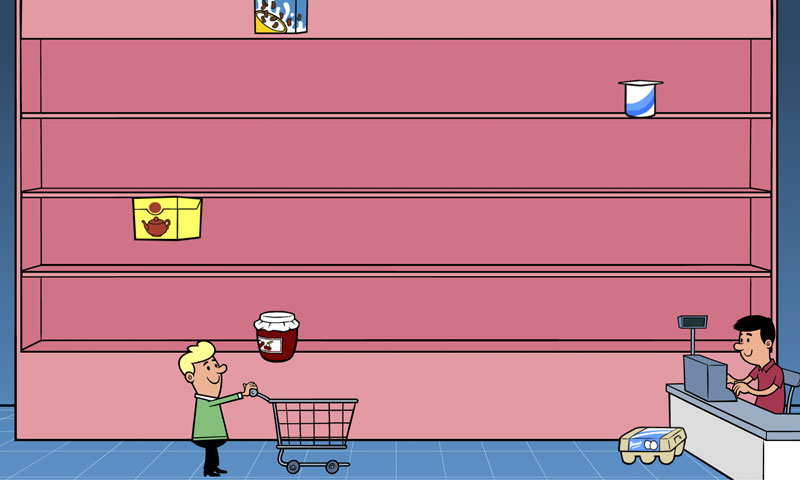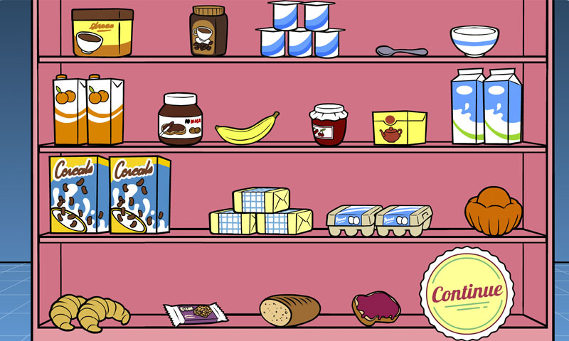 C'est l'heure de prendre le petit déjeuner ! Zut, les placards sont vides ! Il faut donc aller faire les courses !