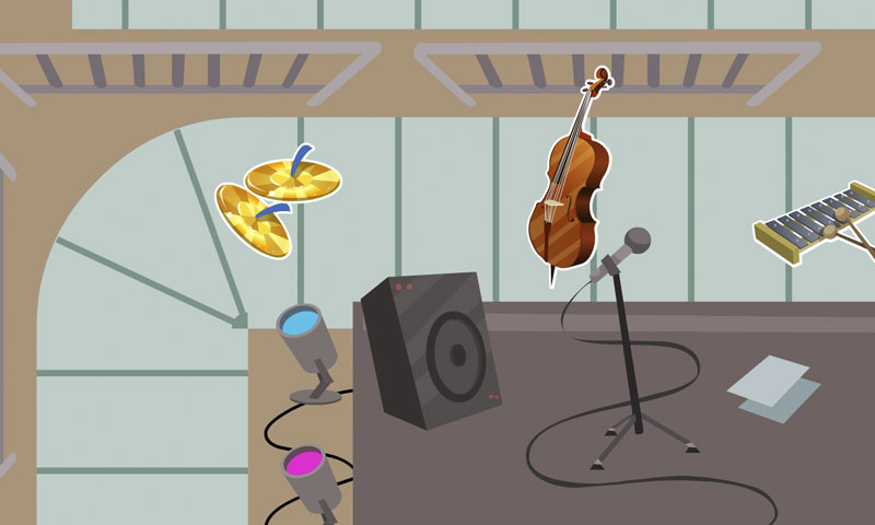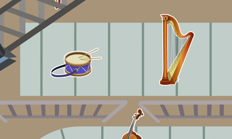 C'est la fête de la musique mais les instruments sont mal rangés. Ecoute bien et tente de reconnaître les instruments demandés.