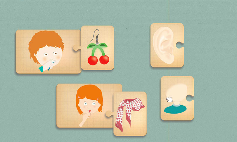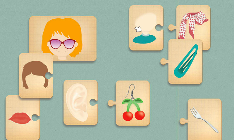 Quel bazar ! Les parties du visage et leurs accessoires sont tout mélangés... Rassemble les paires pour remettre un peu d'ordre dans tout ça !