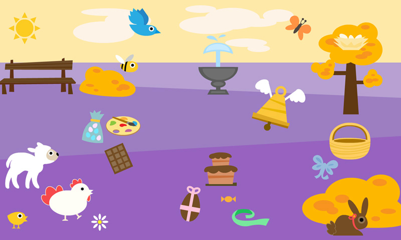 Ding dong... Les cloches sont passées dans le jardin enchanté ! Lapins, oeufs en chocolat et papillons s'y baladent en toute liberté. Sauras-tu tous les retrouver ?