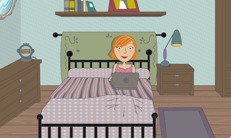 Bienvenue dans la chambre des parents. Maman est déjà au lit. Oupss ! Papa enlève ses chaussettes !