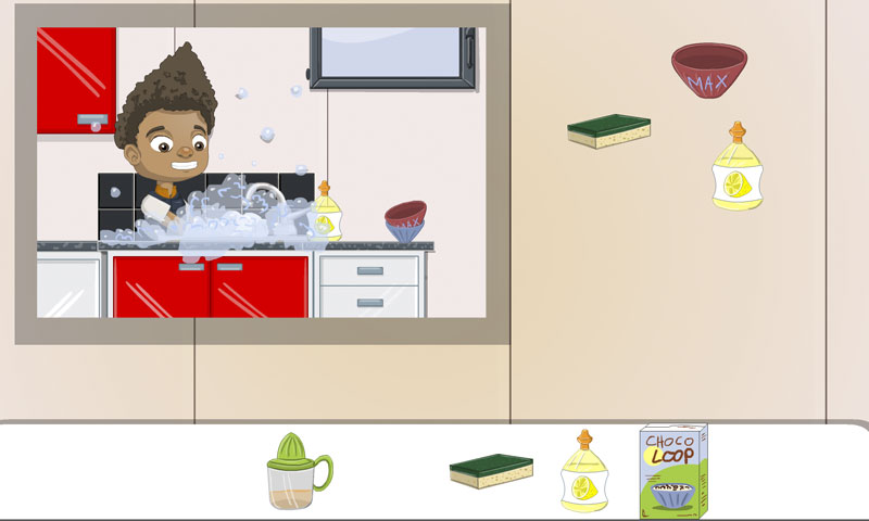 La cuisine est sens dessus dessous ! Aide Tom Walker à rassembler tous les objets nécessaires pour préparer un petit déjeuner, faire un jus d'orange ou bien laver la vaisselle.